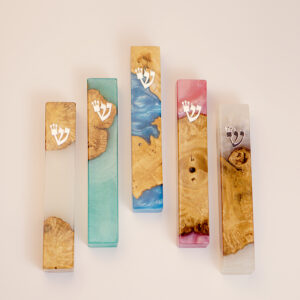 The Synagogue Mezuzah Epoxy Resin Case is designed for community-focused Jewish spaces, including synagogues, study halls, schools, and community buildings. Handcrafted from natural wood reinforced with epoxy resin, this mezuzah is built to withstand frequent use while maintaining a respectful and traditional appearance.